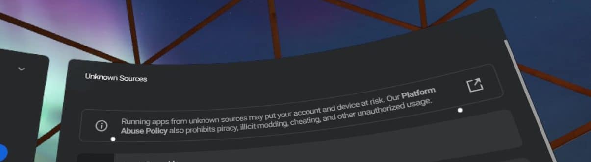 Quest owners who install content from “unknown sources” also now see a warning about the change to the guidelines when looking at that section of their library in VR.