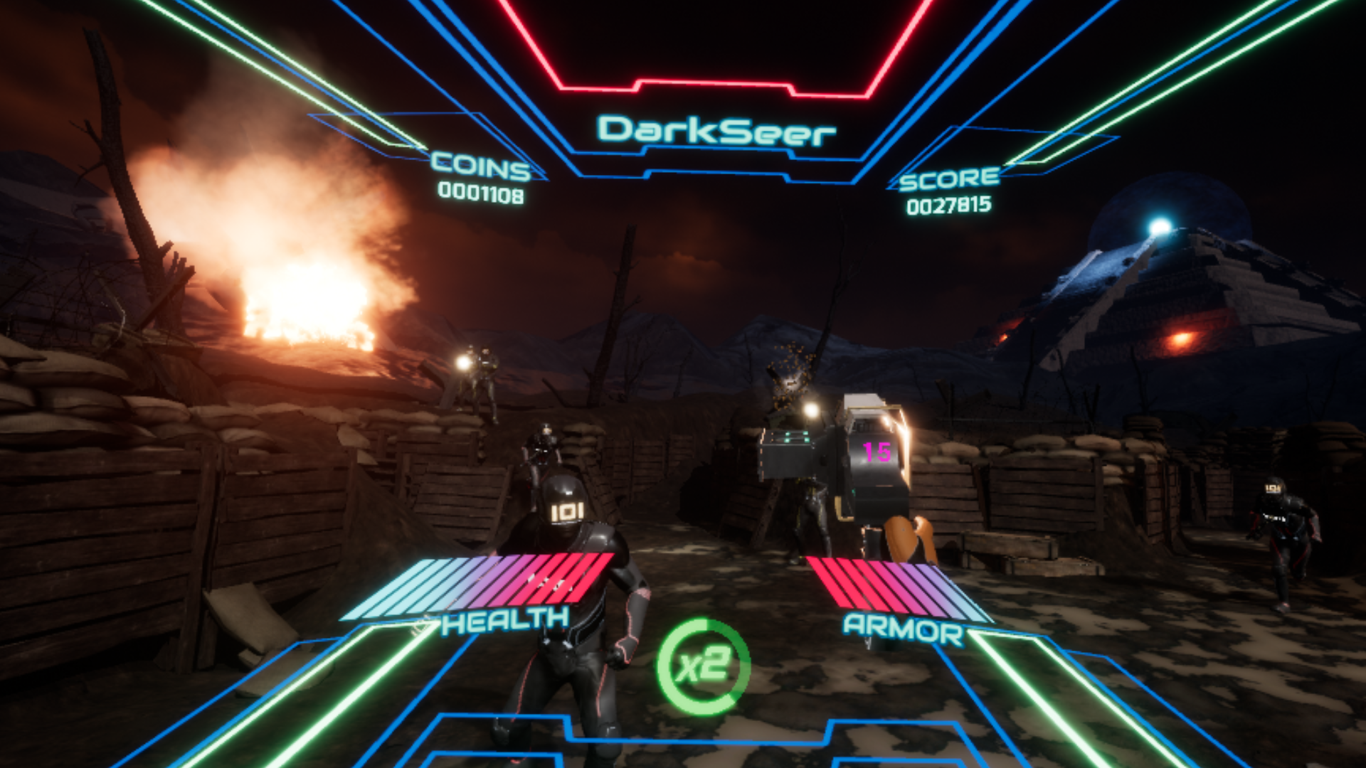 Help to save the OASIS by defeating waves of IOI Sixers. Advance through the trenches of Planet Doom towards the snowy planes that surround Anorak’s Castle. With an arsenal only possible in the OASIS, you must stop IOI from gaining control.
