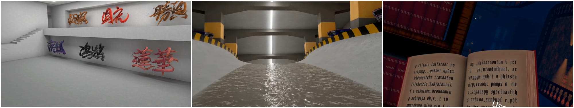 Next, we take a stroll through the Virtual Museum of Visual Art, or VMoVA. This digital art gallery is a marvel of architecture and virtual artworks, housing an extensive collection of visual masterpieces. One of VMoVA’s standout features are its rotating exhibits. This means there's always something fresh to engage with. The currently featured exhibit is "Thickness of Calligraphy" by the artist Boyan. This tour provides an introspective journey through the art of calligraphy and memories and life of the artist, showcasing traditional techniques and modern digital interpretations. The combination of high-resolution textures and well-planned lighting set against a world steeped in greyscale tones makes each exhibit pop nicely, immersing visitors in an unparalleled artistic experience.