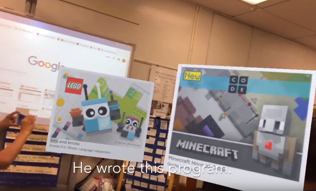 He figured out a way though for his son to do a class presentation wearing Microsoft’s HoloLens while letting other kids understand what AR is by just holding up iPhones to see objects in the shared space. As an added bonus to an awesome presentation (Great job by the way, Christian), the demonstration also serves as a cool example of some tech we haven’t really seen before from the major companies involved in VR and AR.