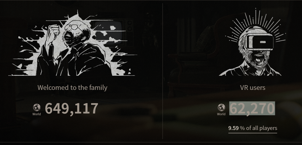 At the time of writing, 62,270 people are using the optional VR support, which is 9.59% percent of the 649,117 people that have opted-in to RE.net. Note that many of the overall players will be on Xbox One and PC, so we don’t know what percentage of people are playing with PS VR in the PS4 user base.