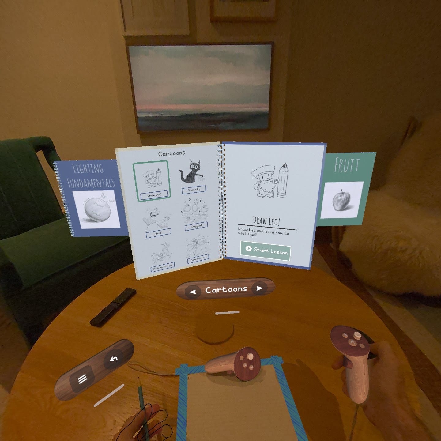 A decent MR innovation becoming a standard: In Pencil, place your left controller flat on your desk to convey your paper’s location to your headset.