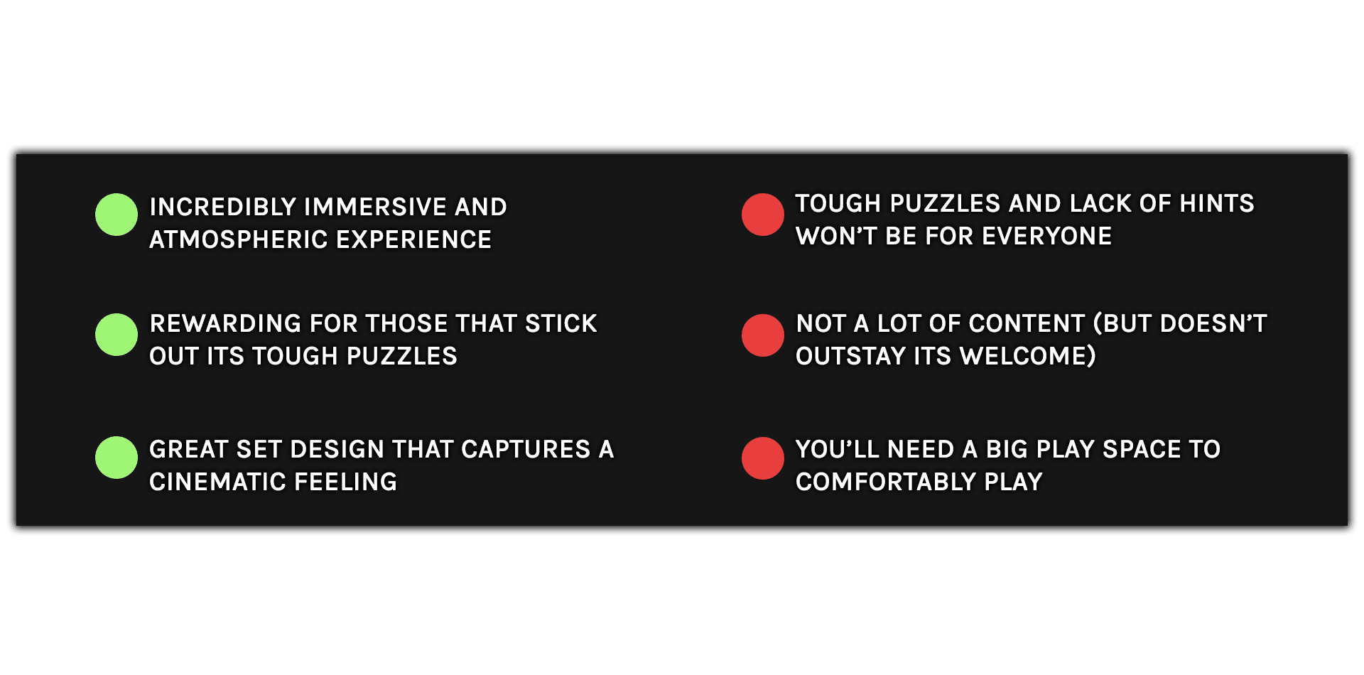 A Rogue Escape is unapologetically the game it wants to be. It’s a tough, claustrophobic puzzler that rewards those who have the patience to poke and prod their way through its maze of buttons and switches. If its stuffy atmosphere doesn’t sound appealing to you then it’s not likely to win you over, but anyone looking for a more demanding VR puzzle game will no doubt find a lot to like here.