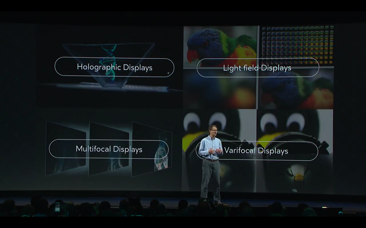 To do so, we might need to turn to new types of displays including holographic, light field, multifocal, and varifocal types. If you’ve never heard of any of those don’t worry; Abrash noted that none of them were good enough to tackle the issue yet, especially for a headset. He wasn’t sure which would provide the solution, but was confident that at least one would provide a “good” depth of field in the next five years.