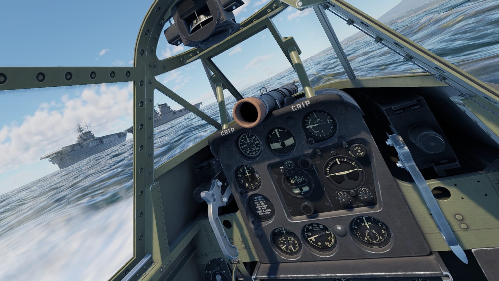The other difference is just how integral VR is to Aces of Thunder. That may seem an obvious thing to point out, but with a flatscreen version that offers crossplay, Gaijin could so easily have undermined its own efforts by including a superfluous or seemingly harmless HUD element or camera view that favored one group of players over another. Take War Thunder; it has perfectly serviceable VR functionality, sure, but it’s not in the slightest bit necessary or helpful. Here though your only view is from the cockpit. There are no third-person views or chase cameras, no floating icons or voiceover cues to suggest your plane is about to spectacularly break apart, or indeed hardly anything that would constitute any element of a gaming HUD - aside from a map that sits on your lap and I really had to lean into to get anything from. In short, all your feedback about your mission, the state of your aircraft and any potential threats all must come from the timely and judicious use of your Mk 1 eyes and ears. The challenge of the game and why it is so compulsively immersive is because, yes, you have to master the controls, but simultaneous to that is the need to be as aware of what your cockpit instrumentation is telling you as much as the creaking of the airframe or a violently oscillating wing before it snaps off and sends you spinning into the briny below.