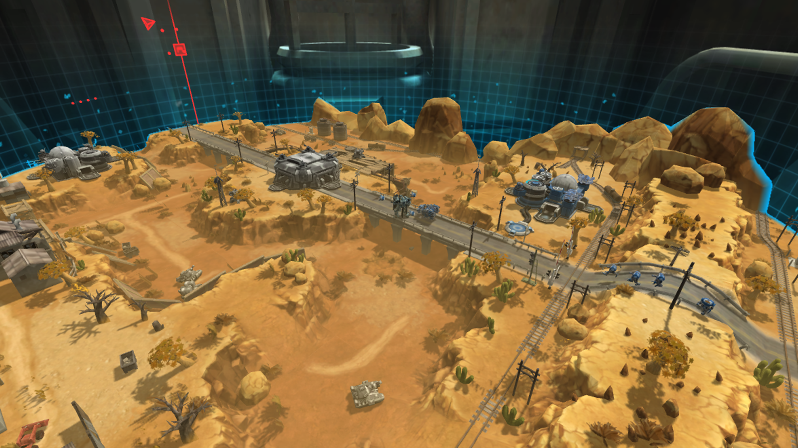Another advantage VR brings to the table? Eliminating UI clutter. To build units (up to 60 types total, ranging from jetpack-equipped infantry to anti-air turrets and devastating Goliath tanks), you simply look up, activating a toolbar you can navigate with your controller. Once you’ve dialed in what you want, clicking the A button queues it up at the nearest base. This may seem like a minor tweak, but it further compliments the immersion and imparts a strong sense of presence since you feel like the commander in charge, not merely a person controlling that player.