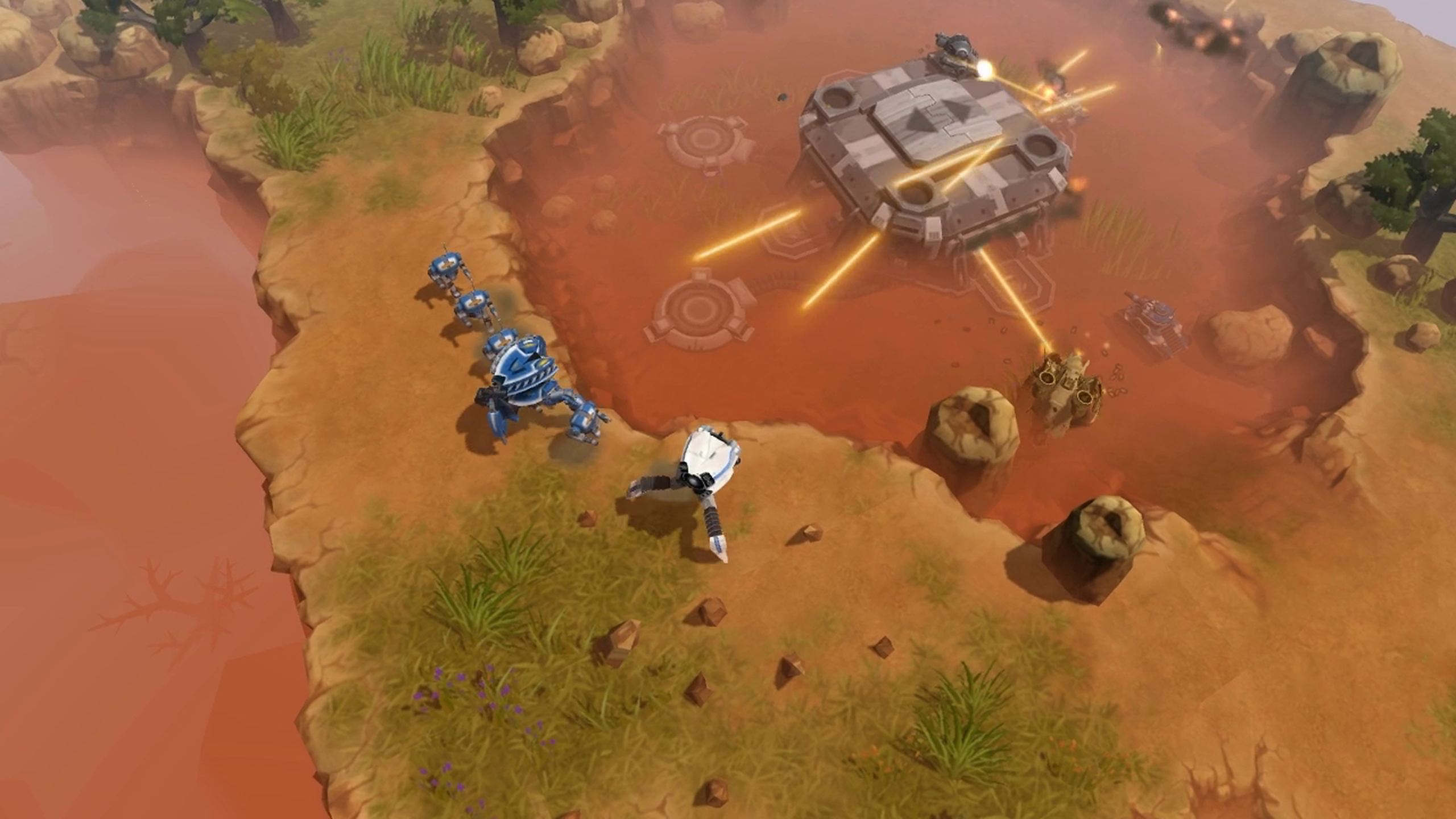 You can eventually unlock 10 different AirMechs, each with vastly different roles and support skills. This is the character you have direct control over, using it to scoop up and place units at strategic points on the map, or flying over entire squads and commanding them to fall back, hold their position, attack, or capture the nearest unclaimed base.
