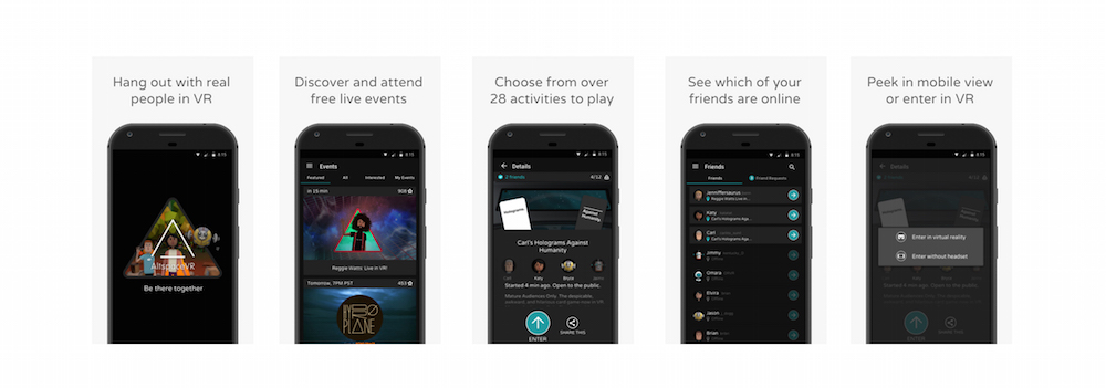 AltspaceVR also has a similar “two dimensional mode” available now for PC and Mac. AltspaceVR is available now on the Google Play Store for free.