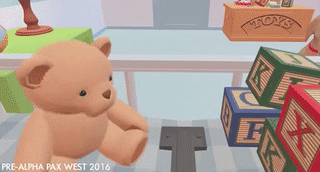 My new demo started out similarly to the last. I was a baby in a crib and I had to shoot the bedroom door with a gun to get my mom’s attention. She entered my room and put some cereal on the end of her pistol and leaned forward pointing it right in my face. Immediately I felt uneasy as I had to lean forward and stand up to reach the bit of cereal to “eat” like a good boy. Even though the visuals are a bit exaggerated and the characters are cardboard cutouts, voluntarily putting my mouth onto a gun in VR made me weary immediately and it honestly set the tone for the entire experience.