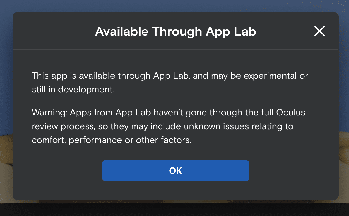 So, on one side of App Lab, we don’t have the full capabilities of platforms like Steam or Itch. And on the other side of App Lab, we don’t get exposure from Oculus, as all App Lab apps are considered off-platform. That leaves us in a kind of double-bind situation.