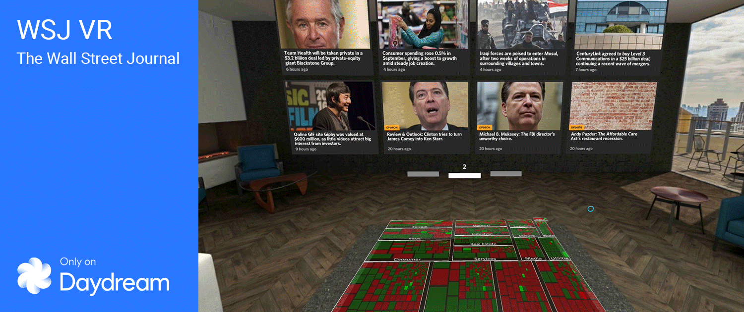 WSJ brings its mix of reporting and analysis to VR with this app, offering market data visualization, 360 degree interactive videos and more.