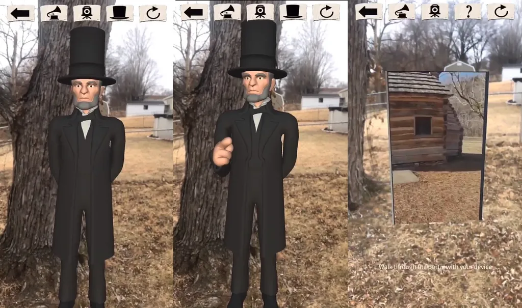 The app itself is free, but in-app purchases can unlock portals for you to step through, transporting you to significant locations from Lincoln’s life in 360 degrees. It’s a pretty interesting mix of AR and 360 video for sure.