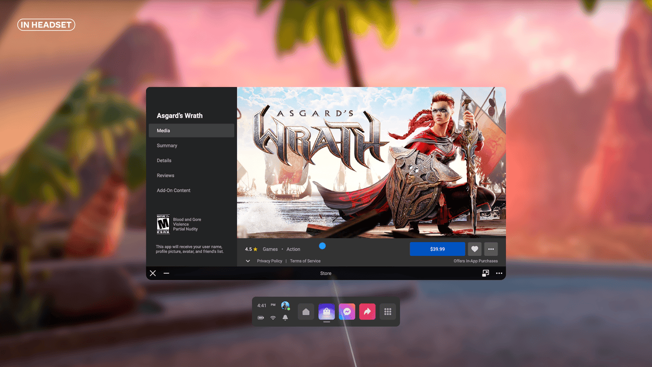 A set of assets released to demonstrate new changes in Quest 2’s v41 update featured Rift-exclusive Asgard’s Wrath in a Quest store mock-up.