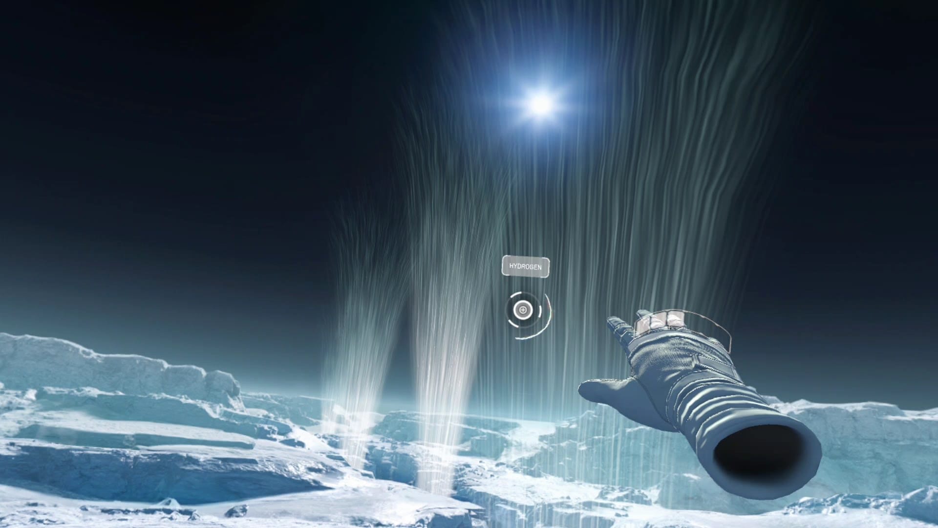 - Beam down to moons and use hand gestures to scan for elements and collect them.
