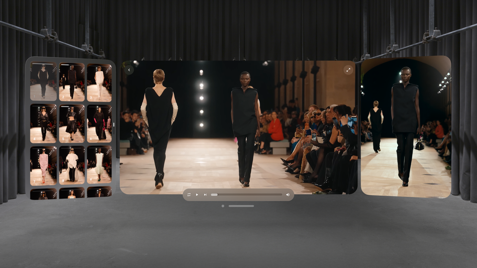 For the most part, the show flowed naturally, though occasional edits were noticeable, disrupted the sense of presence, and felt unnecessary. At times, some models appear to jump slightly forward or reappear a step further along the runway during a turn. The transitions are brief, but in an immersive format they stand out more than they would in a traditional runway video. From an experience standpoint, I would have preferred to watch the full capture of the show unfolding as if I were there.