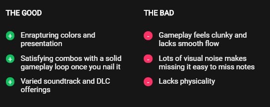 I hate to have made so many comparisons to Beat Saber in this review, but especially on the PC side of things where the active modding community is providing Beat Saber with a near infinite number of songs and so much more, it’s hard not to. For a lot of people the question is: Why should I buy Audica if I already have Beat Saber? And that answer is gonna be very different for most everyone.