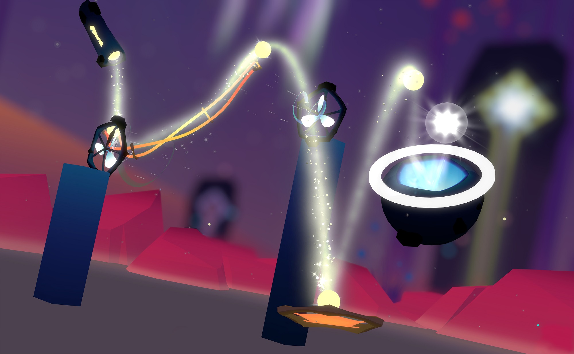 “While you’re solving these puzzles, you’re also expanding the music,” says Williams. “We created a procedural dynamic music generation system, so going down a ramp leads to a down pitch effect, for example, while going up the ramp may sound like something else.”