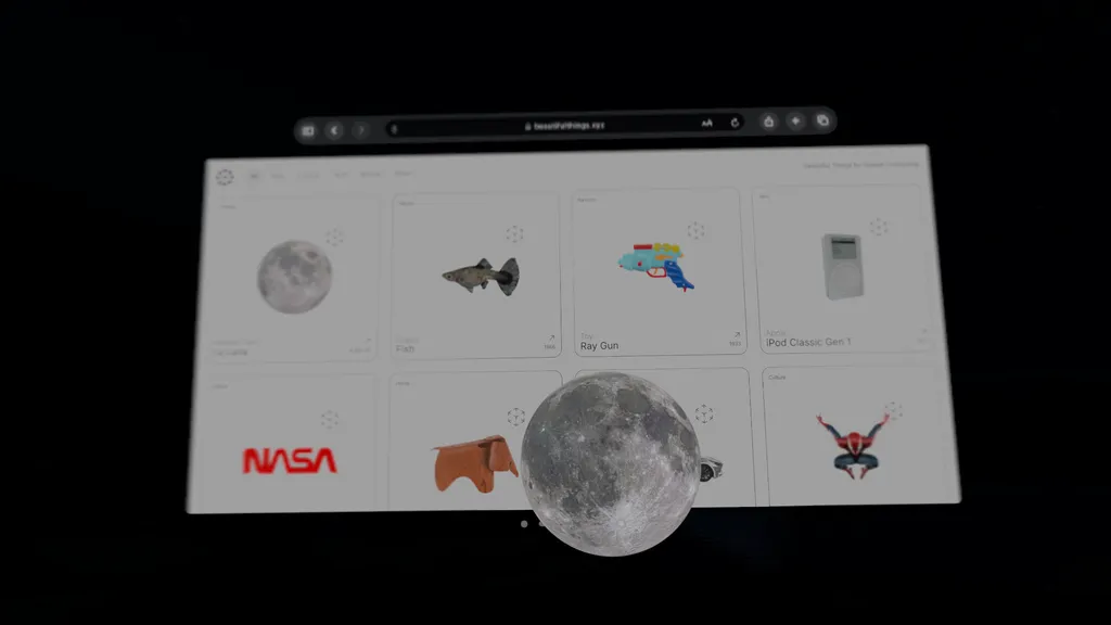 Reaching into a website and pulling an object into your room isn’t exactly a new idea, but beautifulthings.xyz accomplishes the job on Apple Vision Pro very well.