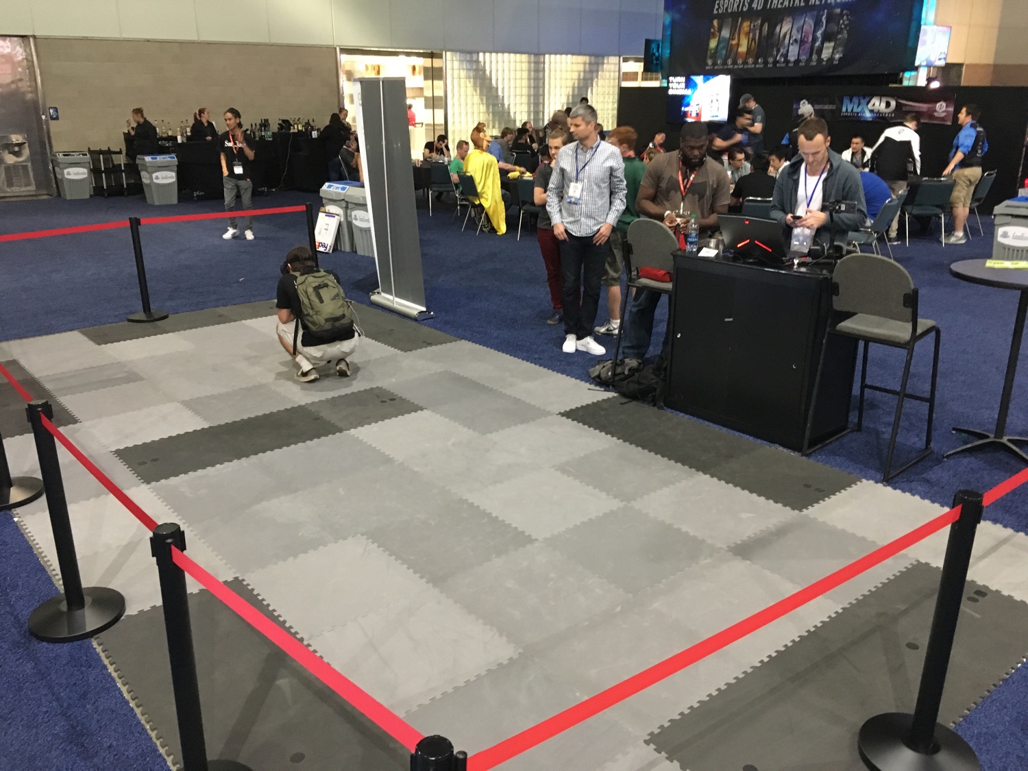 At E3, however, the company embedded the lights into inexpensive foam flooring and covered a much larger space with the tracking technology than we’ve seen attempted previously. The system tracked a pair of Gear VRs in a 3.6 meter by 7.2 meter space and showed a concept of a two-player game in which the space was divided in half and each player could stay within their region.