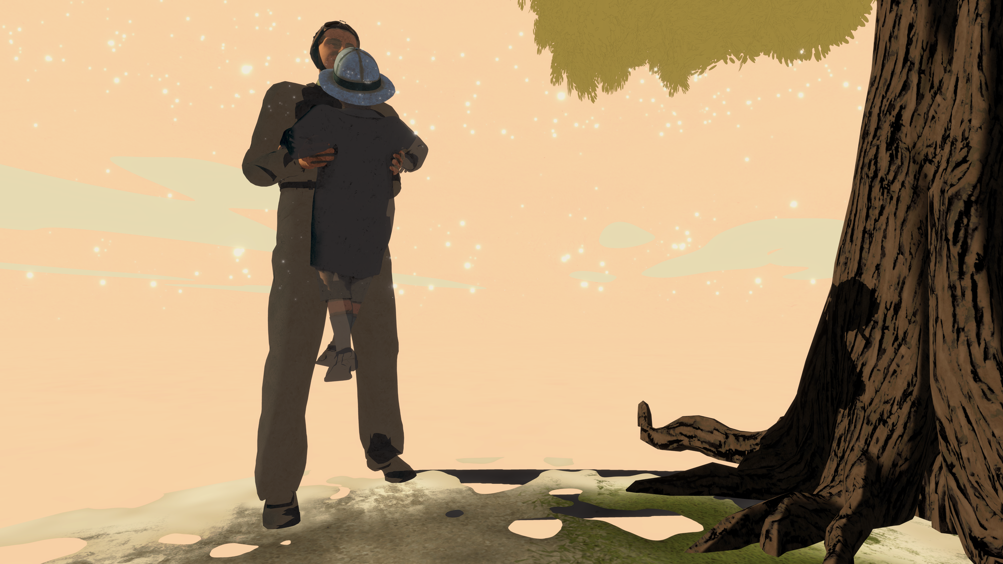 That's all portrayed through immersive environments with sadly limited interactivity, letting you pick up digital photos or a trophy but not much more. The presentation can feel slightly rough at points with jagged shadows, though there's character to these stylized visuals that makes this easier to forgive.