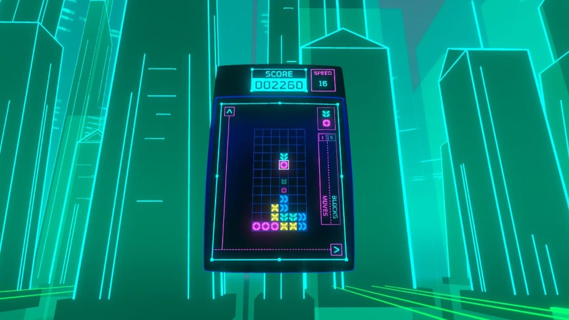 Bloxer’s visual and audio presentation is decisively retro, with neon colors and a synthesized announcer voice that fits the idea of this being an updated version of the Tetris games that have been a staple of arcades and other platforms since the 1980s. You can also hear the control box react in pain when it's being hit, which is a cute novelty.
