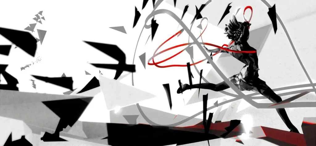 I am surrounded by a sea of shapes, twisting and pirouetting through a tangle of vines. As I leave them behind, I approach a room of boxes that suddenly come together into stairs and platforms. I dash up them, then dance through a field of floating globes, ever closer to my goal.
