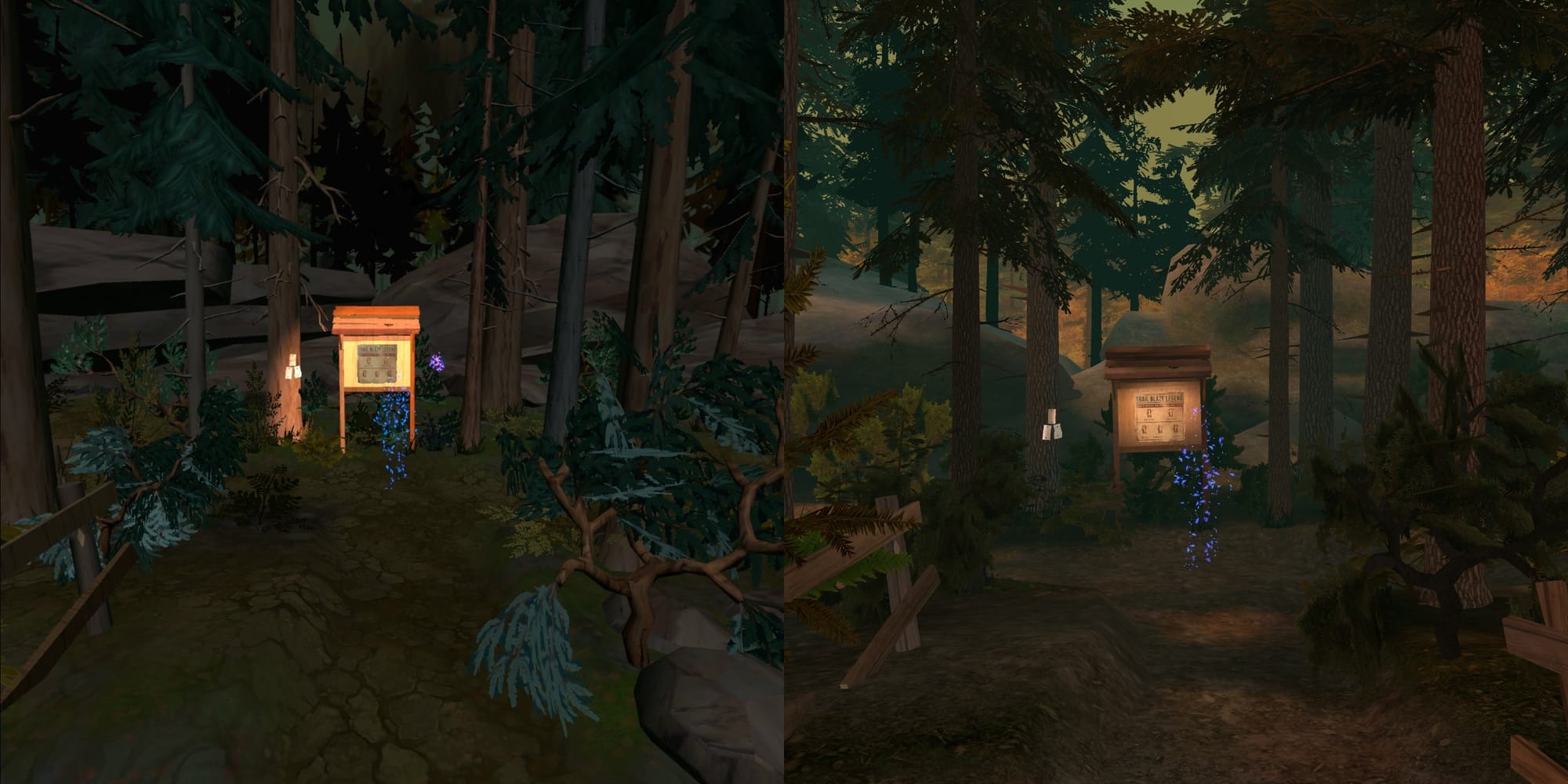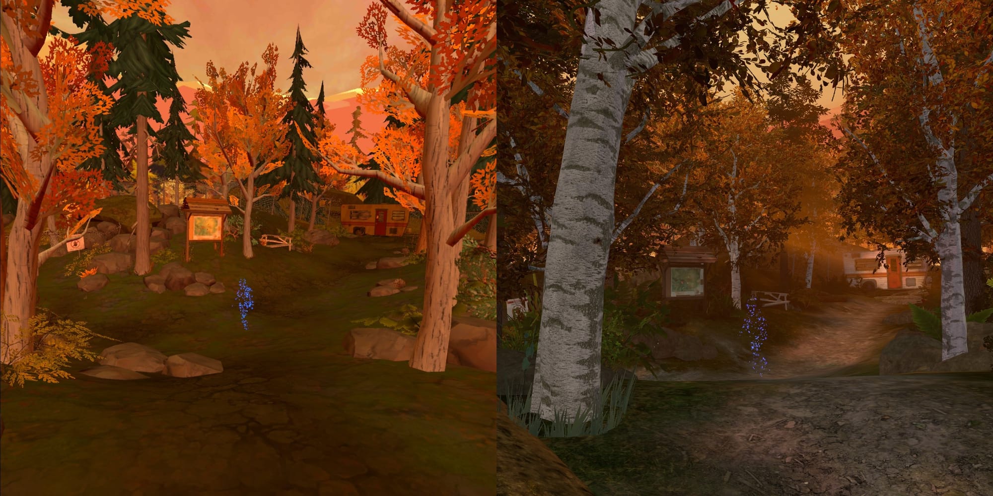 After an otherworldly introduction, moving through a dreamlike wood at night as story exposition is provided through an internal monologue and giant, superimposed newspaper clippings, you quickly find yourself on a crisp mountain trail during fall. From there, you move through the game using a point-to-point system - no free locomotion here.