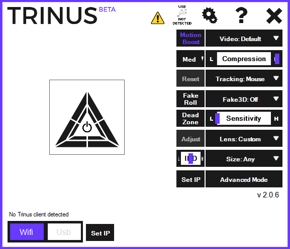 Finally, check your tracking settings. Mouse is default, meaning when you move your head, the computer mouse will make a corresponding movement. This is useful in applications that aren’t natively VR, since mouse movement will usually move the camera.