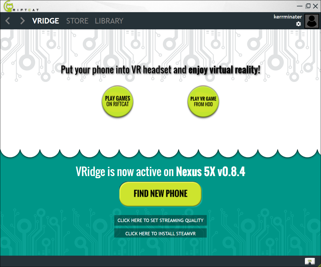 Boot up the VRidge application on your phone and it should start looking for the desktop client.
