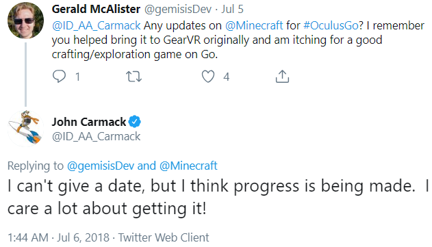 This brings us back to yesterday’s tweet, where Carmack suggested “some progress” has been made.