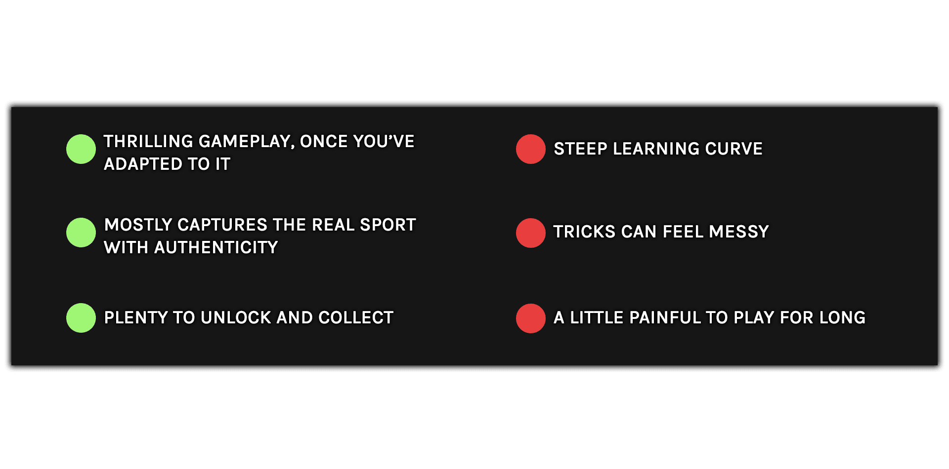 Carve Snowboarding has a steep learning curve that’s well worth mastering, even if it never completely covers up its messy side. Fight through its unusual control scheme and you’ll find a game that captures the thrilling elegance of its real-life counterpart in a way flatscreen games have never quite managed. It doesn’t have the precision of classic snowboarding games and it’ll tie your mind in knots at times but, once you’ve experienced the rush of Carve’s downhill stunts, you wouldn’t want it any other way.