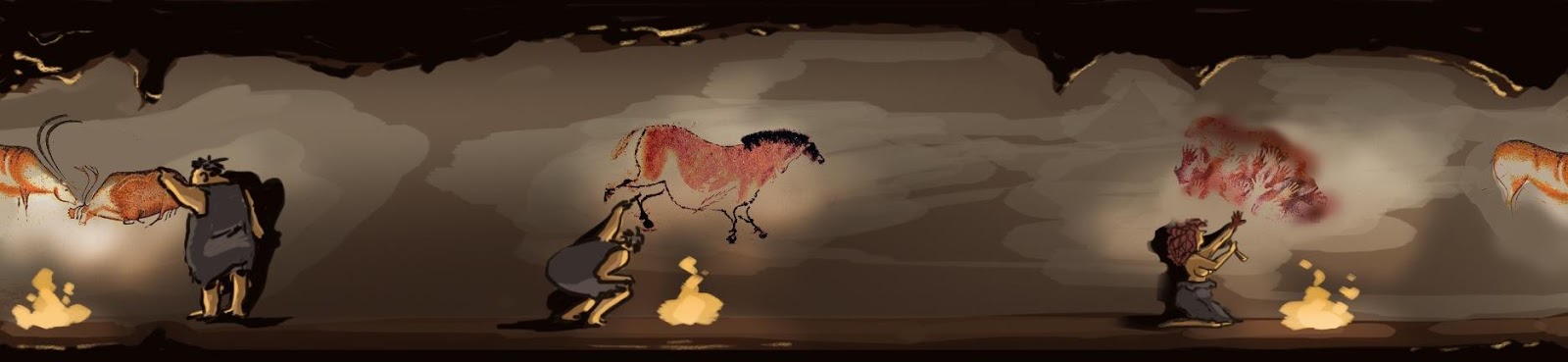 While I was pondering these tech hurdles, TED Ed was asking me for ideas about which teaching topic should be the short’s main concern. Luckily I had some ideas here. It was my impression that, because I was going to be drawing every pixel on the screen, I didn’t want to have the subject matter include vast cityscapes or sprawling vistas (I came to do an about-face on this thinking later). I came up with three possible environments from which to cull a topic: immersed in the ocean, inside the body, or inside a prehistoric cave. For each of these topics I was thinking that the environmental “walls” would necessarily be abstract, amorphous, and still constrict the subject matter. I felt secure that if I gave myself the parameters of a singular closed environment, I’d be able to create a world that made sense in 360-degrees. To my delight TED Ed liked my favorite idea the best and we decided to pursue the history of Stone Age cave painting. The irony was not lost on me that we’d be teaching about mankind’s oldest known attempts at creative expression while utilizing perhaps the brand-newest method of presenting this information: virtual reality.
