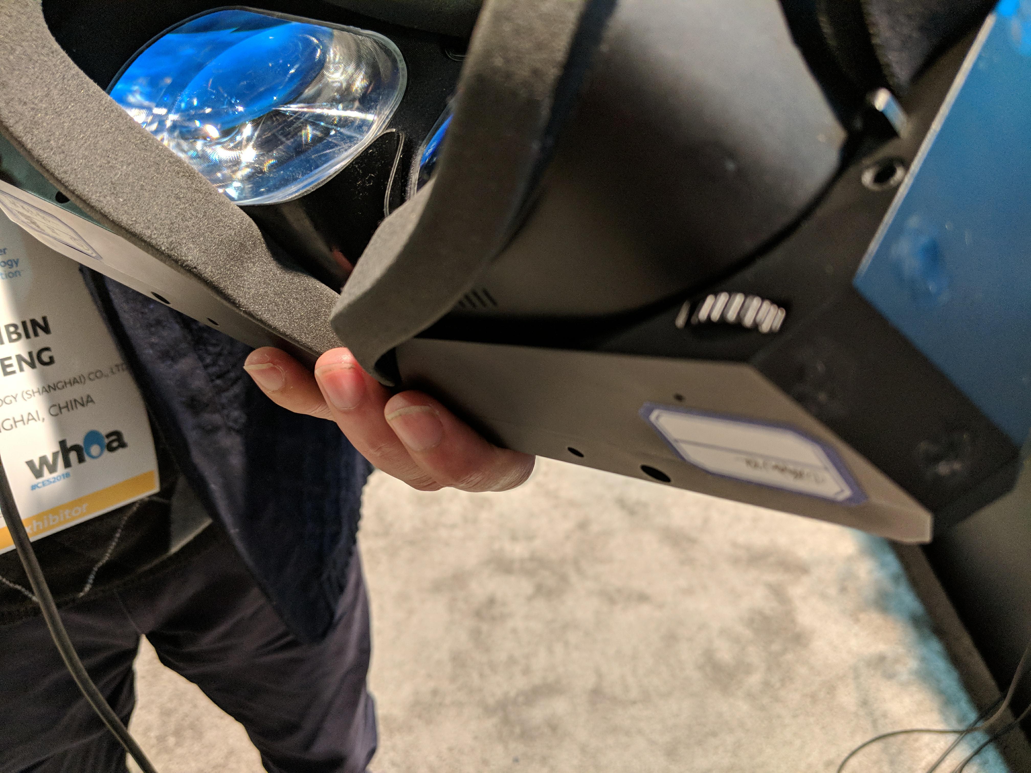 The brightness worked great, vertical field of view was excellent (much larger than any other VR headset I’ve seen), and it wasn’t as uncomfortable as I thought it’d be. It’s certainly nowhere near as comfy as its competitors because of how much larger and heavier it is, but they’ve done a good job balancing that as much as they can. I don’t know if I’d have the same opinion after playing an hour or more of an active VR game, but it was okay for a short demo.