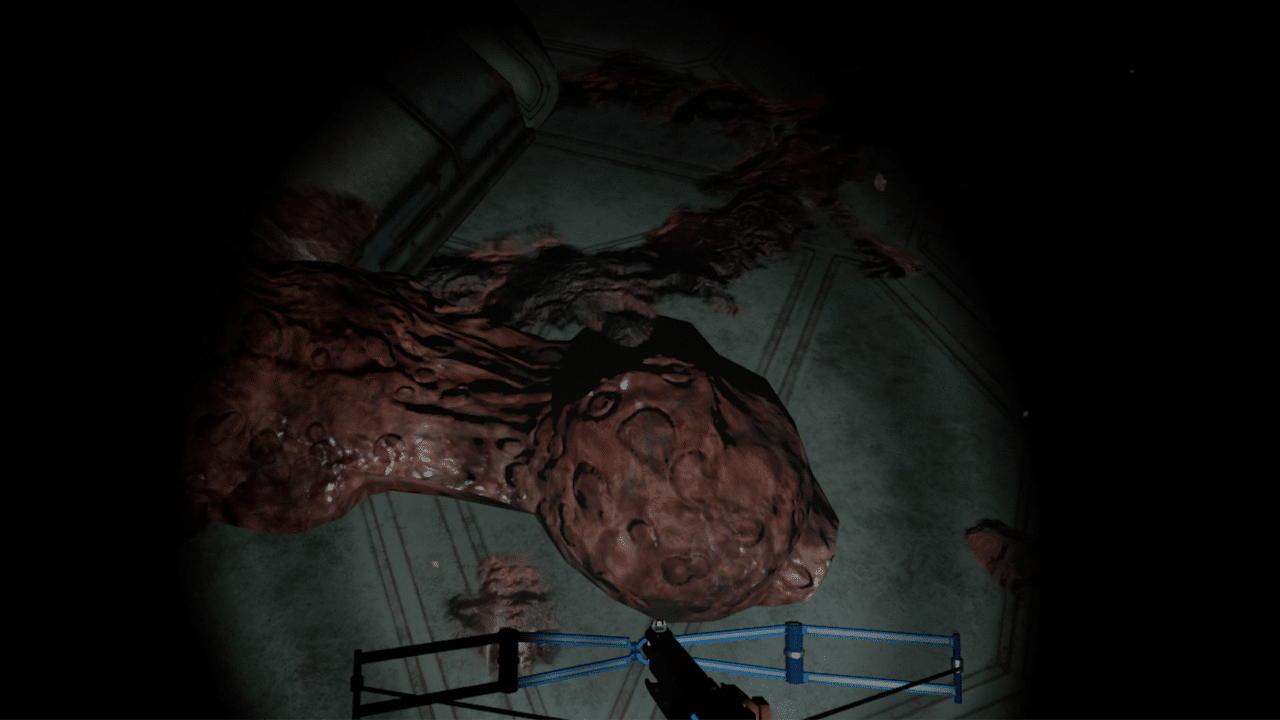 Starting with the flesh that plagues the hallways, you can see a real lack of depth and life in the Quest 2’s scabbed over textures. It almost looks burnt or dried on, which actually made me feel a little more nauseous than the gooey, moist raised growths on PC VR.
