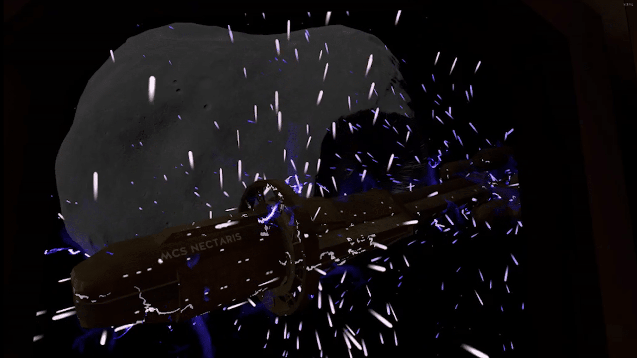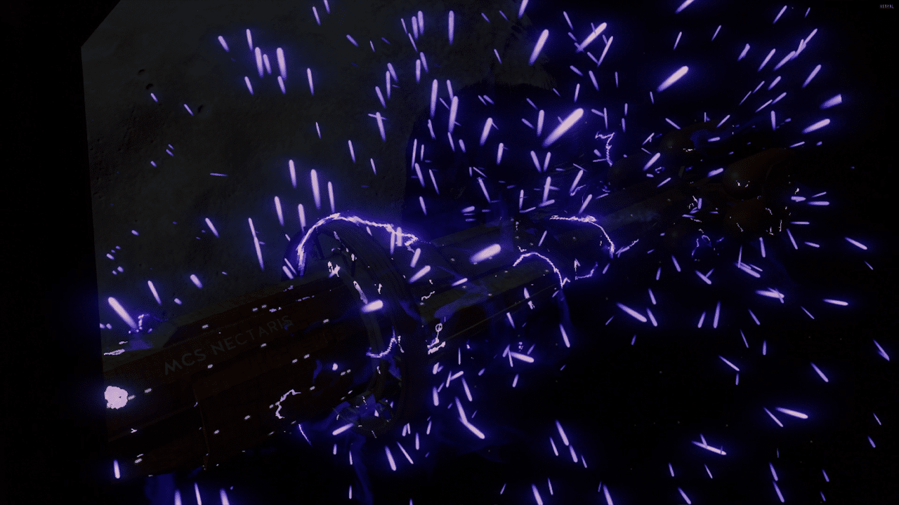 In the opening shot of the ship exploding it’s clear to see color saturation is far more intense compared to the washed out sparks emitting in the Quest 2 version. Colored glows, or blooms, also go amiss in the Quest 2 version which you’ll notice not only here but also onboard the ship with button lights, your wrist flashlight, and the control panels decorating the walls.