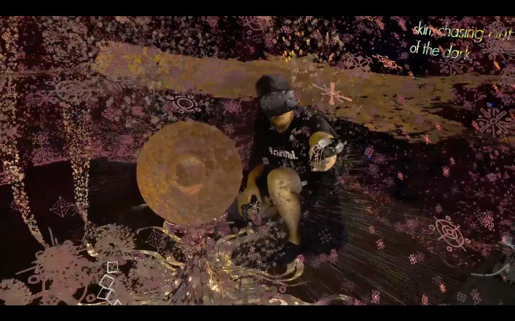 Delila was created in Tilt Brush. Cabbibo assembles scenes with thousands of tiny virtual snowflakes, vibrantly colored and organically swarming into position every time you turn the page. They weave around a blank backdrop, taking form like a flock of birds gliding in unison. When they take shape, a narrator continues to progress through the story, with words appearing for you to read along to.