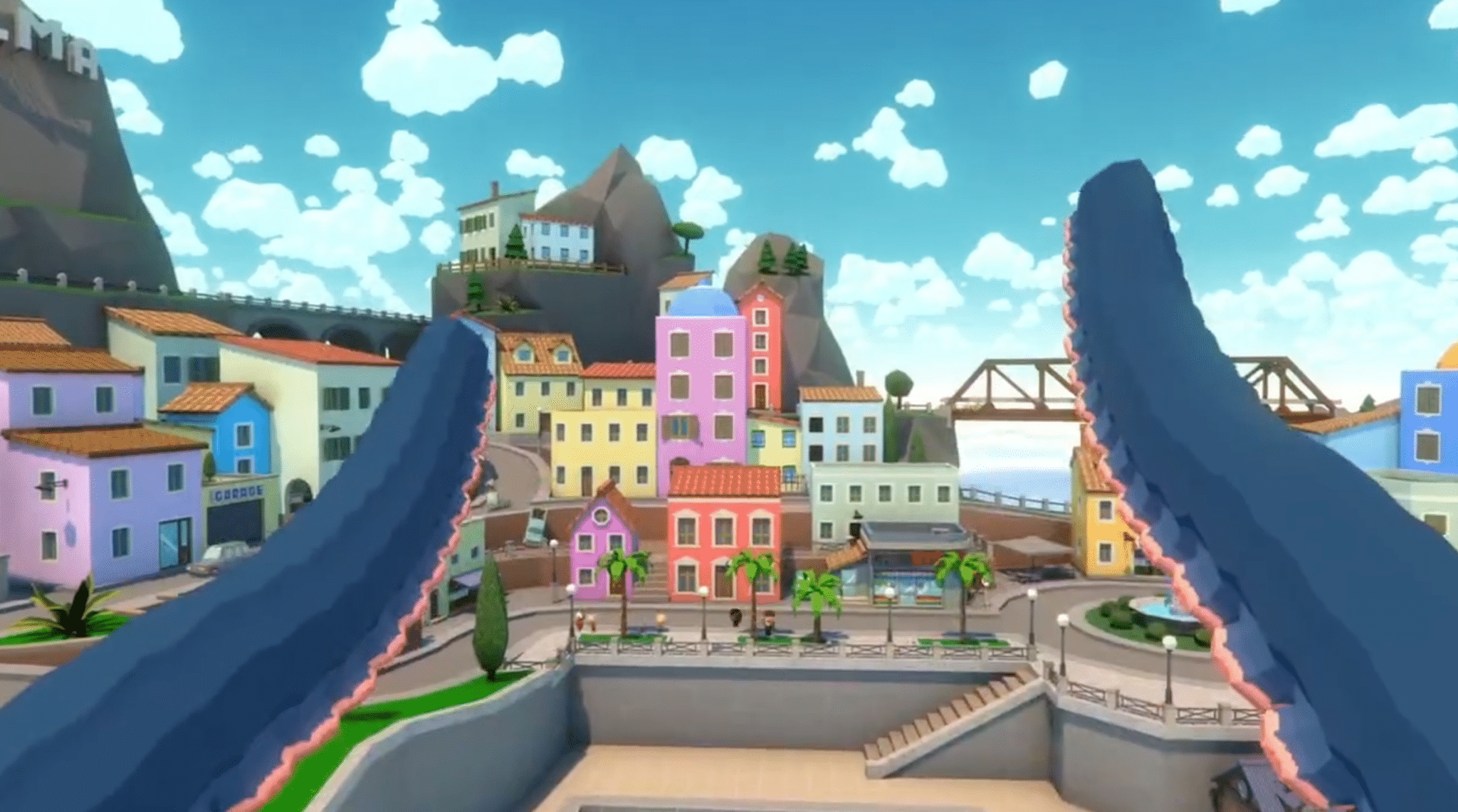 Given the freeze frame at the end, pictured above, it seems like the premise of the game could be that you embody the octopus monster and terrorise the island and its residents. Sounds like fun to me!