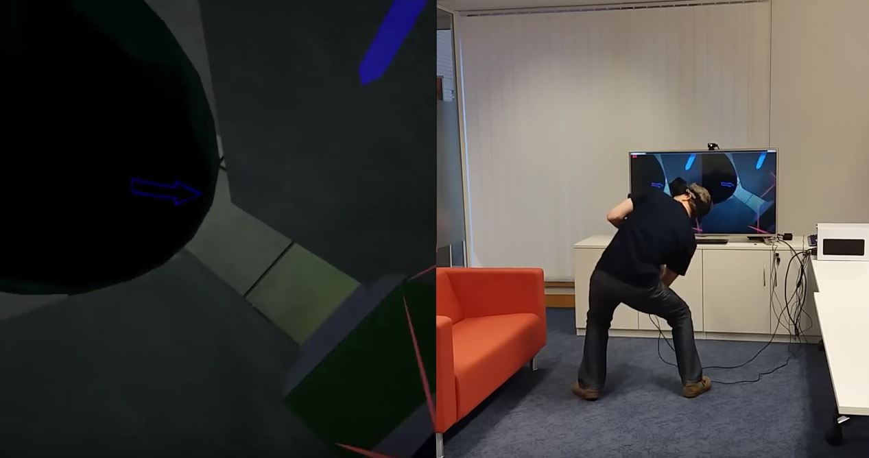 “I knew that [a small space] was going to be a common problem so I concentrated on solutions that would work in very small spaces, but scale to larger areas,” Jackson explained. “Using the HMD’s positional tracking to mark the available space by simply walking around it seemed an obvious approach.” You essentially treat your living space as a transposed map of sorts. Walk around the room to trace the outline of your area and then that’s represented in the game as the space you have to navigate. It’s a simple solution that means even a small office space could theoretically allow you to physically traverse an entire game world.
