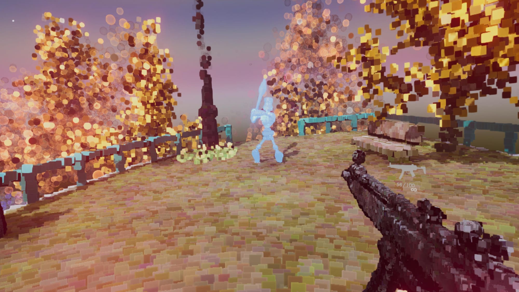 Progressing through this campaign doesn't require shooting absolutely everything, but you must spray your path ahead with bullets to actualize them. Certain objects remain permanently affixed once in place, giving you the peculiar perspectives of everything from trash cans to doors commenting on human nature. If anything, it's symbolic in its suggestion of considering other perspectives.