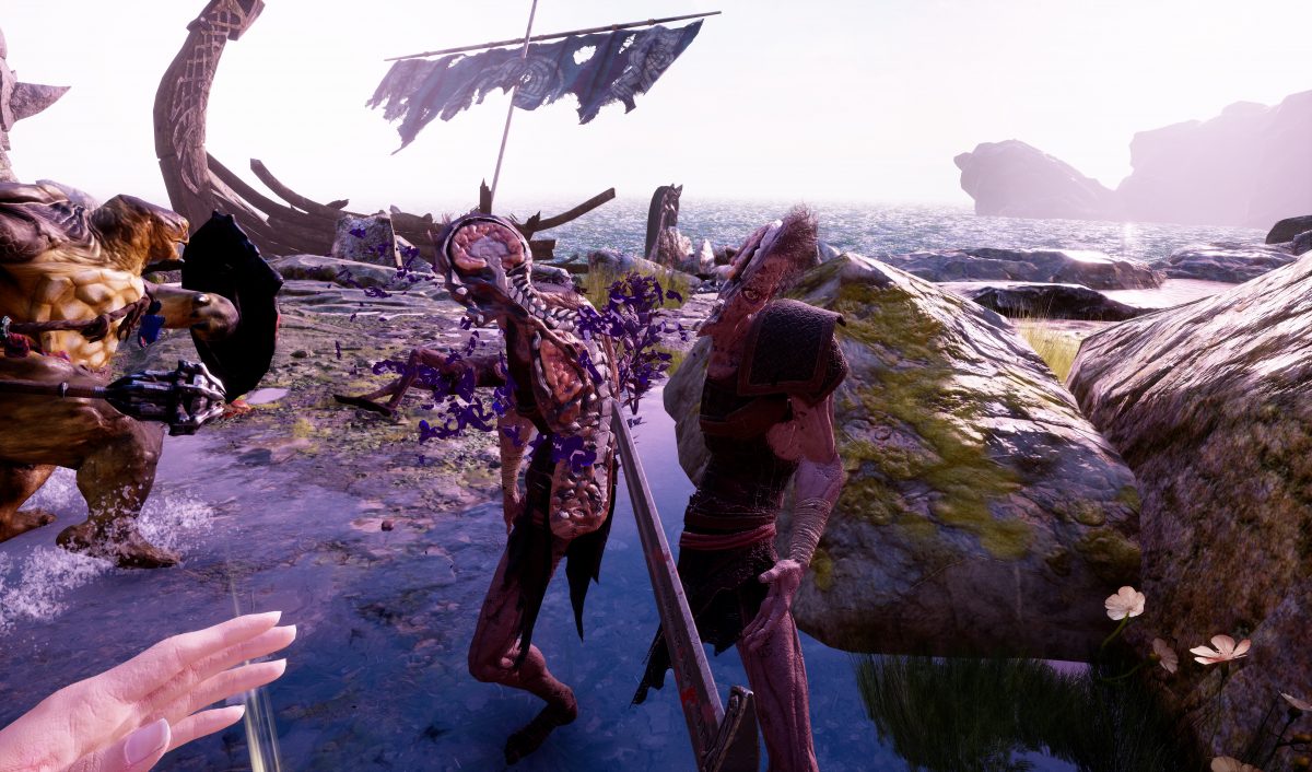 Physics-based sandbox combat games such as Blade and Sorcery do a wonderful job of really emulating a realistic style of combat and even though Asgard’s Wrath has an intense, visceral system it’s not quite on that level. Instead, they do rely on scripted animations, but it’s mixed together with dynamic dismemberment and lots of gore to provide a good middle ground between canned animations and pure ragdoll physics.
