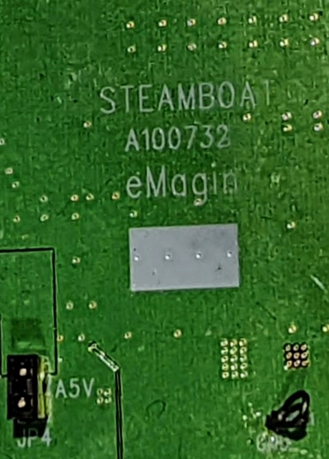 eMagin CEO Andrew Sculley told me this 4K microdisplay was developed alongside a partner based on their requirements for a proof of concept VR headset. But who exactly is, or was, this partner? A marking on the board the microdisplay was demonstrated on may offer a not so subtle hint: “STEAMBOAT”