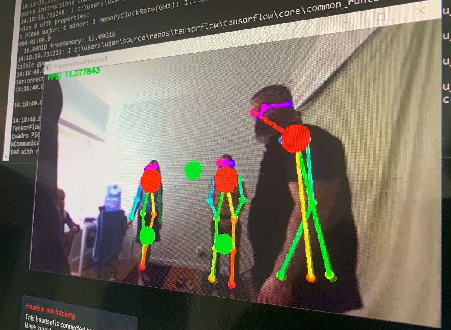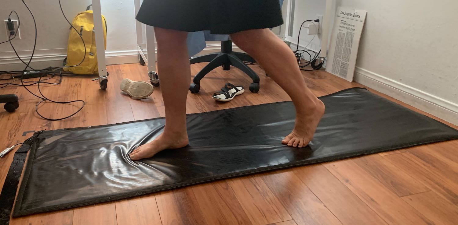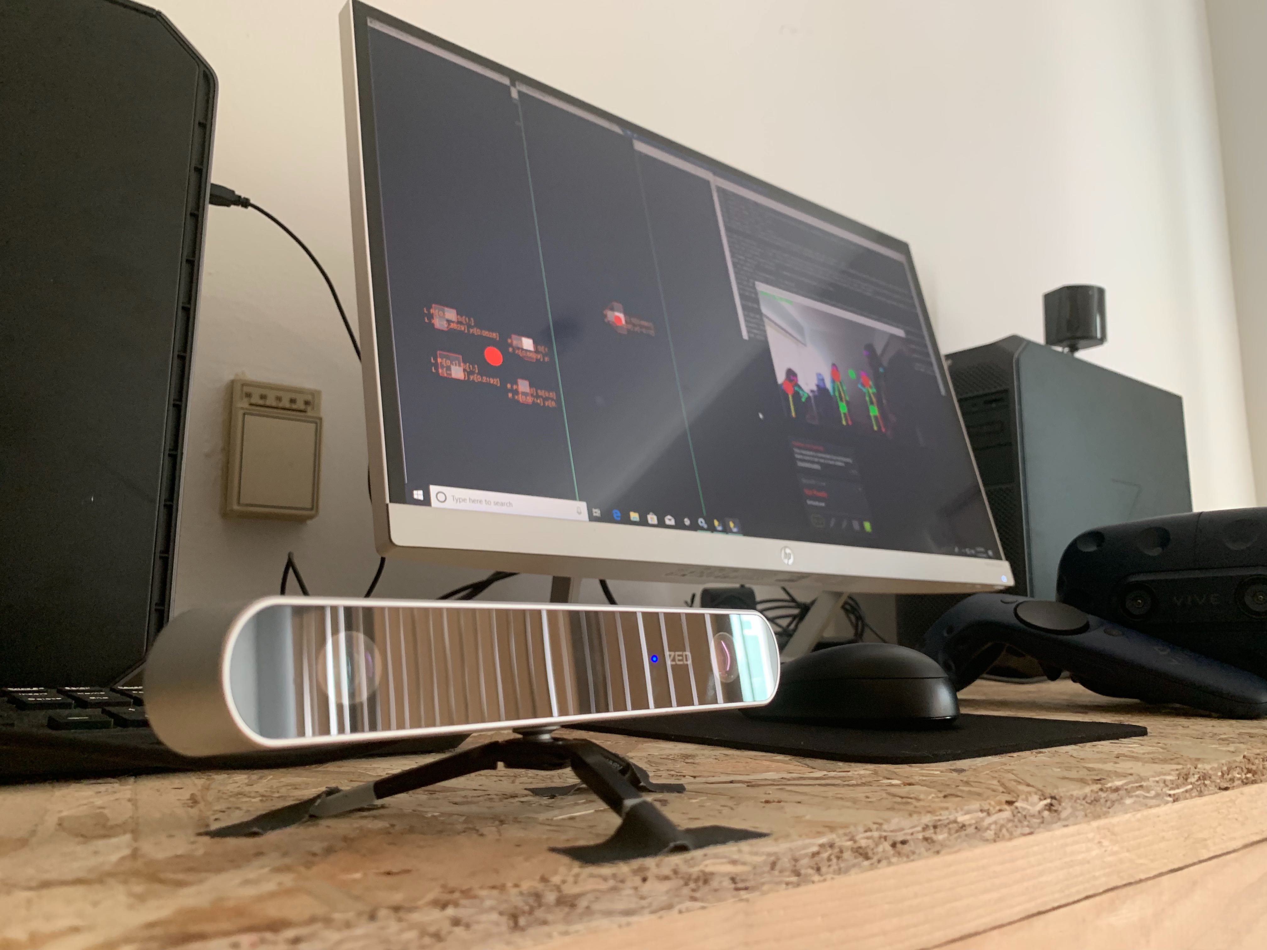 In a demo at an office in Venice, California, the team employed a very sensitive foot mat to hone in movement tracking combined with body movement data captured from a ZED stereo camera pointed at the play space. “By combining computer vision, neural net algorithms / cutting edge machine learning algorithms, the pressure sensitive mat and headset tracking, the system provides a virtual world responding to full body user inputs,” according to the company.