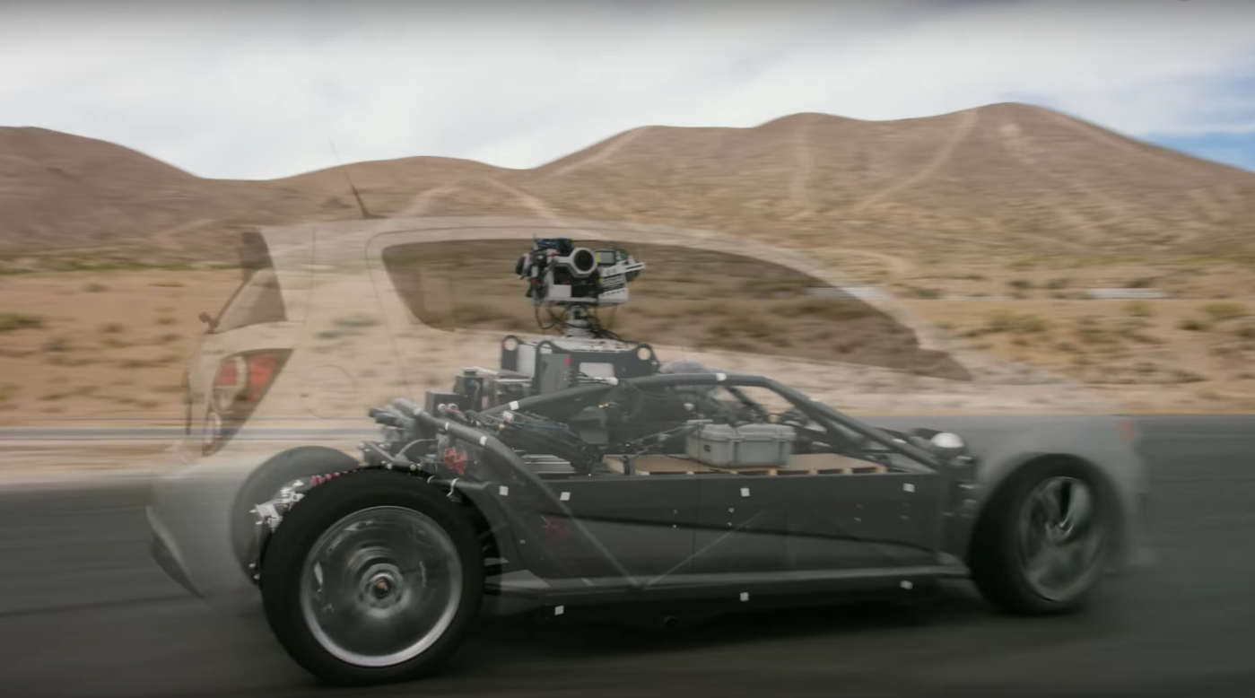 “This high-tech car can run any performance envelope of any car, and it has all the electronic equipment that you need to be able to track it, so you know where it was relative to the camera car, and also generates the light and reflection information that you need to be able to light a computer-generated car,” Libreri said.