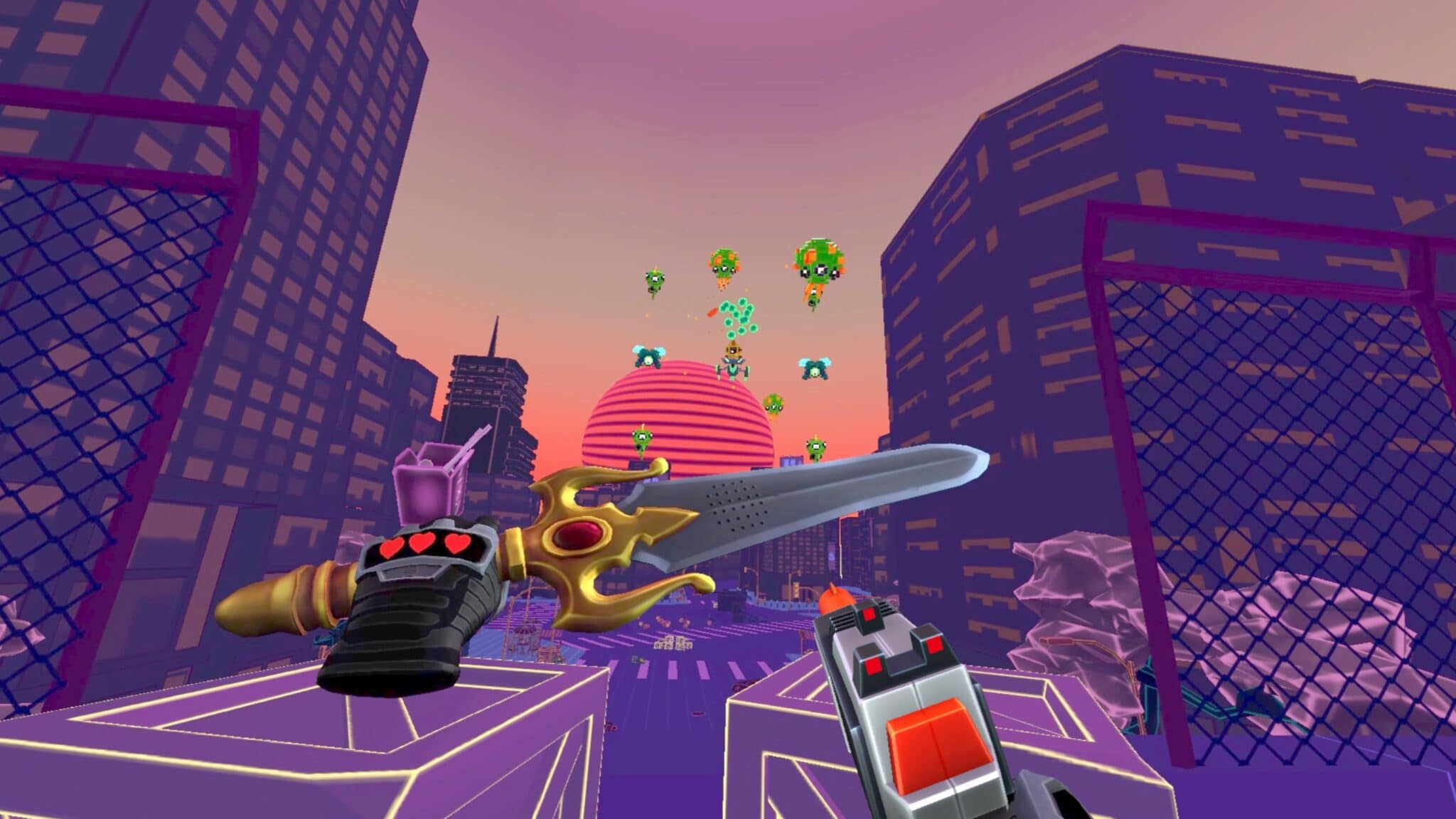 A Quest demo for this new title from Spanish studio Ramen Profitable Games is now available on SideQuest. In it, players are cast as a young kid that tumbles inside an arcade machine from 1985. Inspired by classics like Space Invaders, you’ll play games in first-person using weapons that are also inspired by classic games, toys and console peripherals of that era. In one hand you’ll hold what looks like the NES Zapper, for example, whilst wielding a toy sword in the other. Powerups, meanwhile, equip you with plastic machine guns and more.