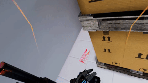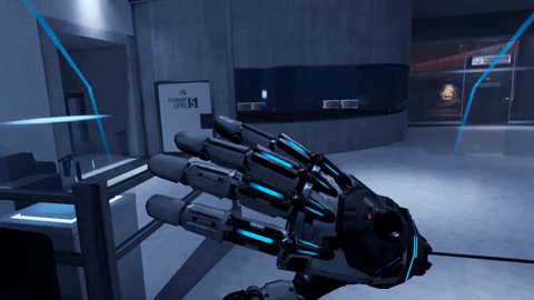 Perhaps one of Espire’s most thoughtful inventions is its take on the stealth sticky cam. Holding the trigger on either controller when your hand is free sprouts a small camera from the back of your hand. Its capture is displayed on a small screen on the side of your UI. You can use this to carefully peek around corners in tight spots without the risk of being captured.