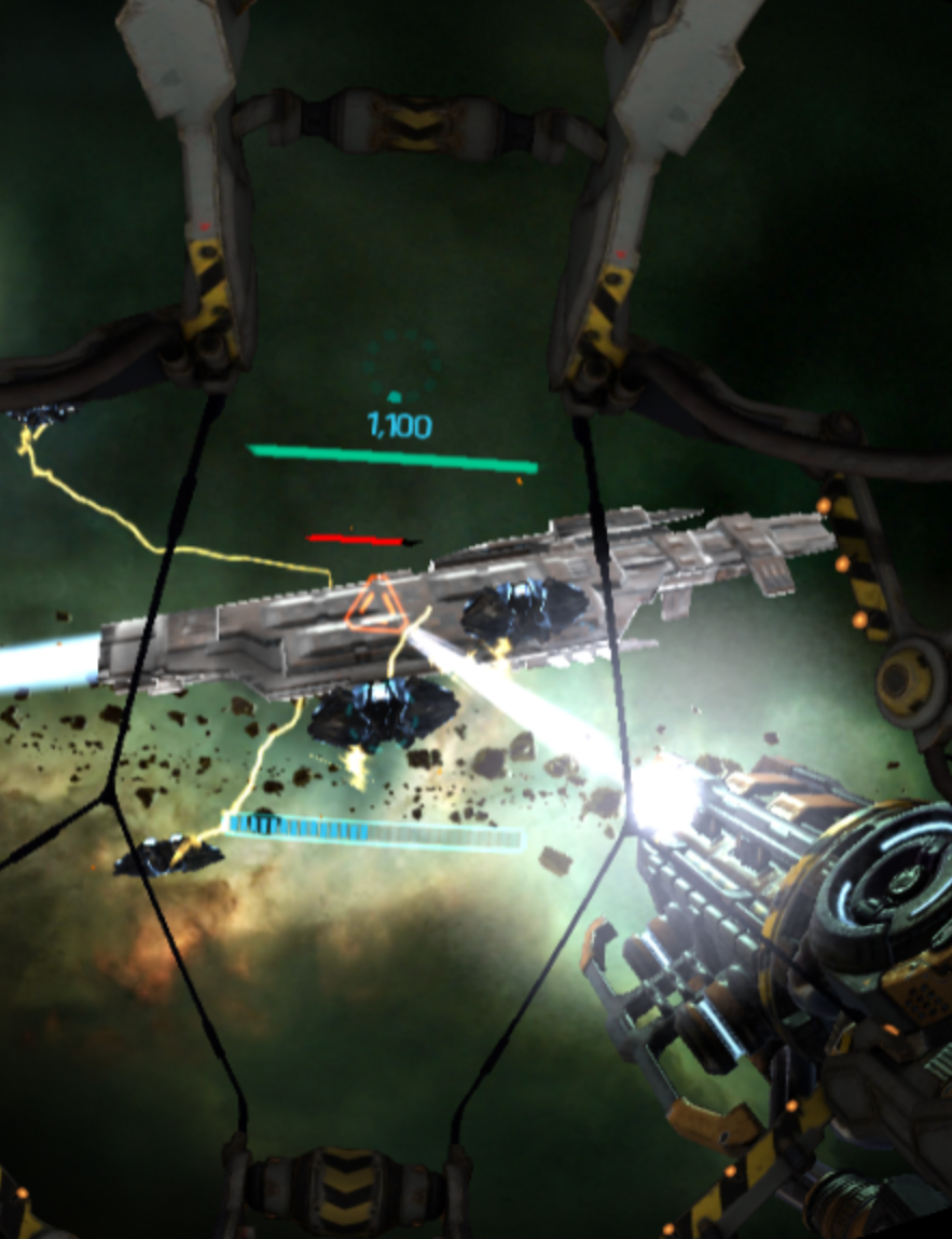 And with that enemies begin warping in from every direction. They come in various formations, with different colors and shapes to indicate their abilities. My turret’s dual guns, one on each side of me, are connected to my head movements. I smash the fire button. Time to blow my enemies from the stars.