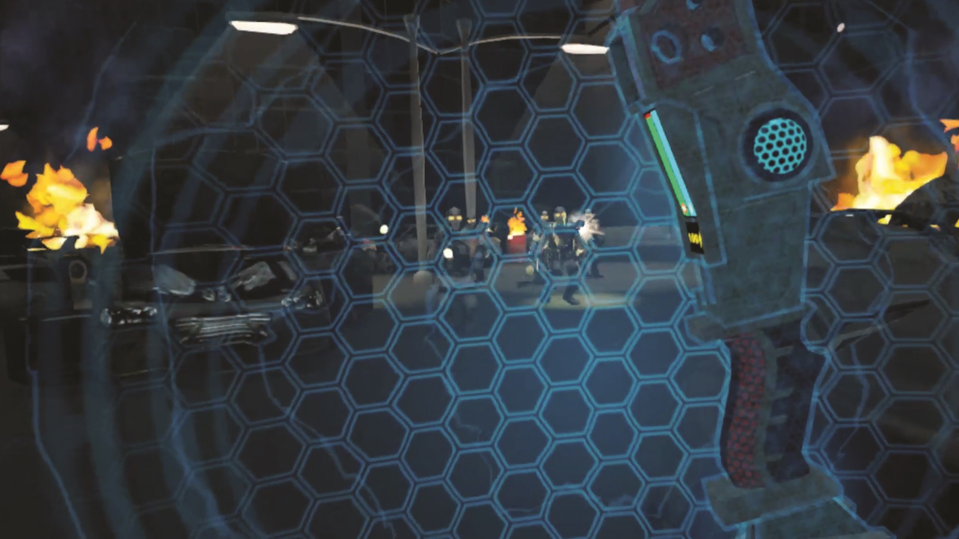 The area I explored was a Prison mission that took place down in the streets of a dark, overrun, and ravaged city. Helicopters hovered above (and could be destroyed, sending chunks of fire and metal raining down) and watchtowers bathed areas in light, searching for me. My strategy was to teleport up behind sandbags, kneel down on the ground, and pick off enemies from a distance. Red barrels erupt into massive cartoon-style explosions with the exaggerated ragdoll physics sending the pseudo-cel shaded soldiers flying.