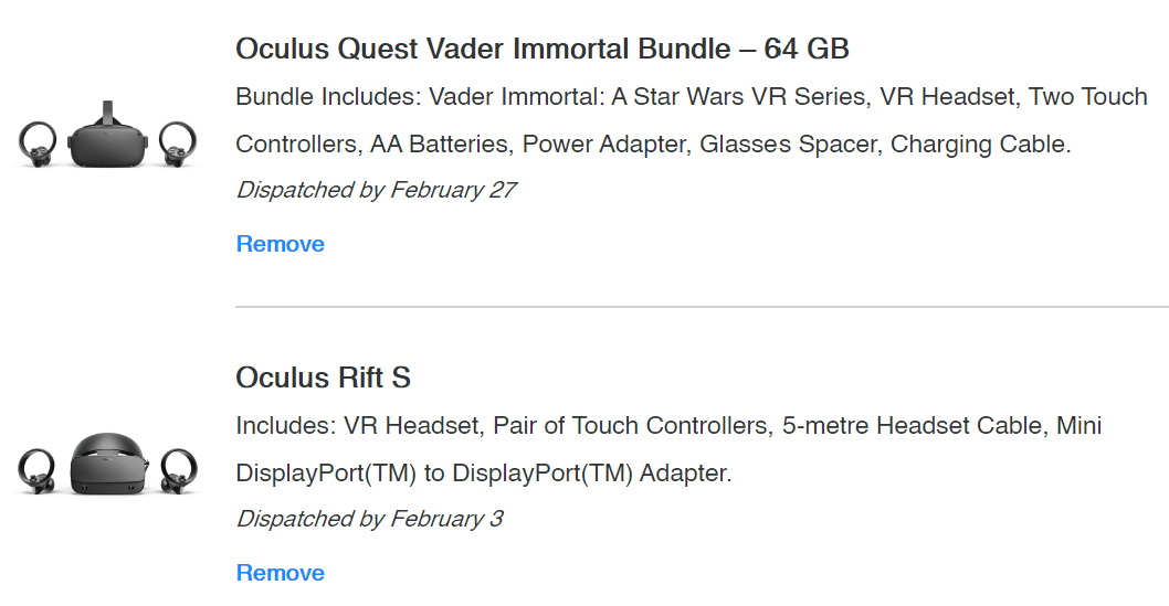 Quest has been consistently backordered since late November. In the US, a Rift S order placed on the official sales site at this time of writing would arrive on Monday, whereas a Quest would arrive four weeks later. Facebook executives stated on multiple occasions that it is building Quest “as fast as we can”.