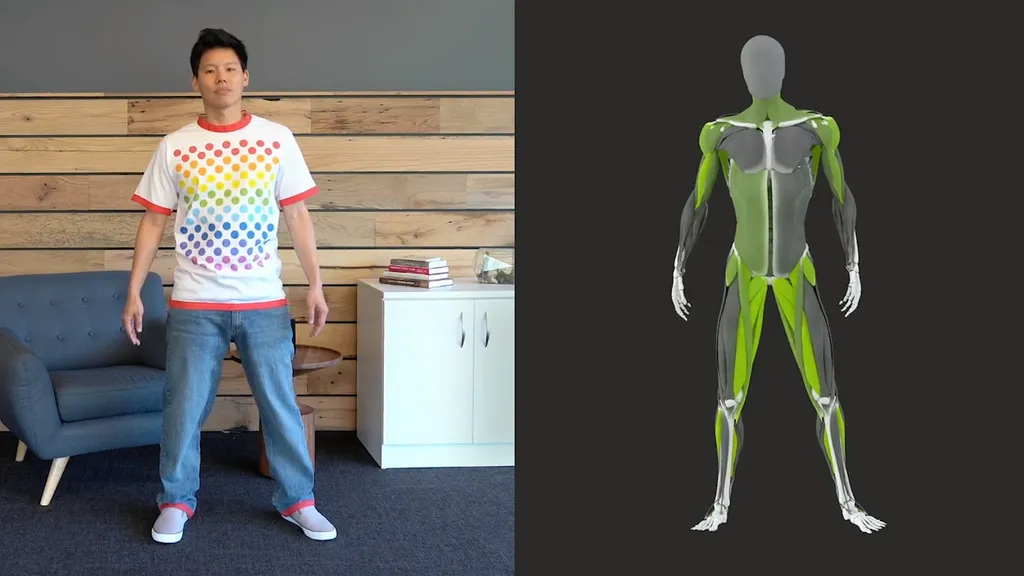 At Day 2 of F8 2019 today Facebook showed off a demo of body tracking with no markers or worn trackers. The tracking is able to track down to the muscle activation level, not just skeletal, giving a more detailed output: