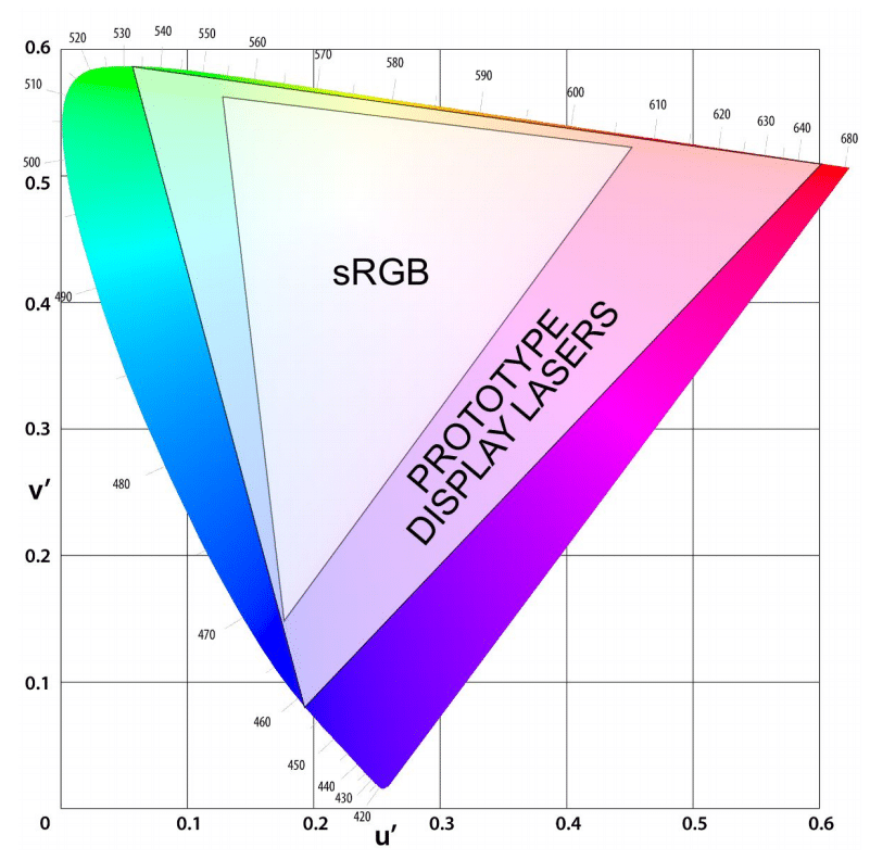 The range of colors laser light can deliver (known as the color gamut) is significantly wider than LCD displays, and in fact slightly wider than even OLED, so this would represent a milestone achievement if it could be moved into a head-worn system.